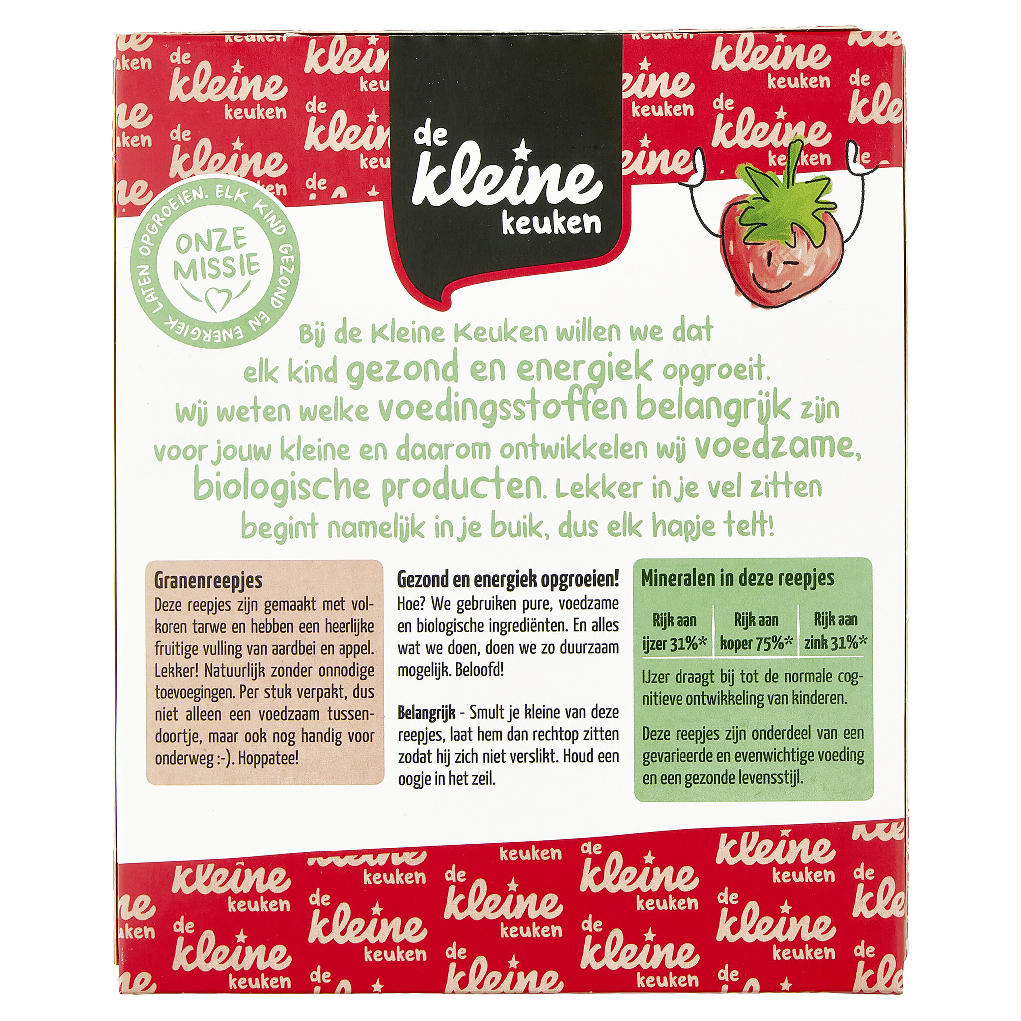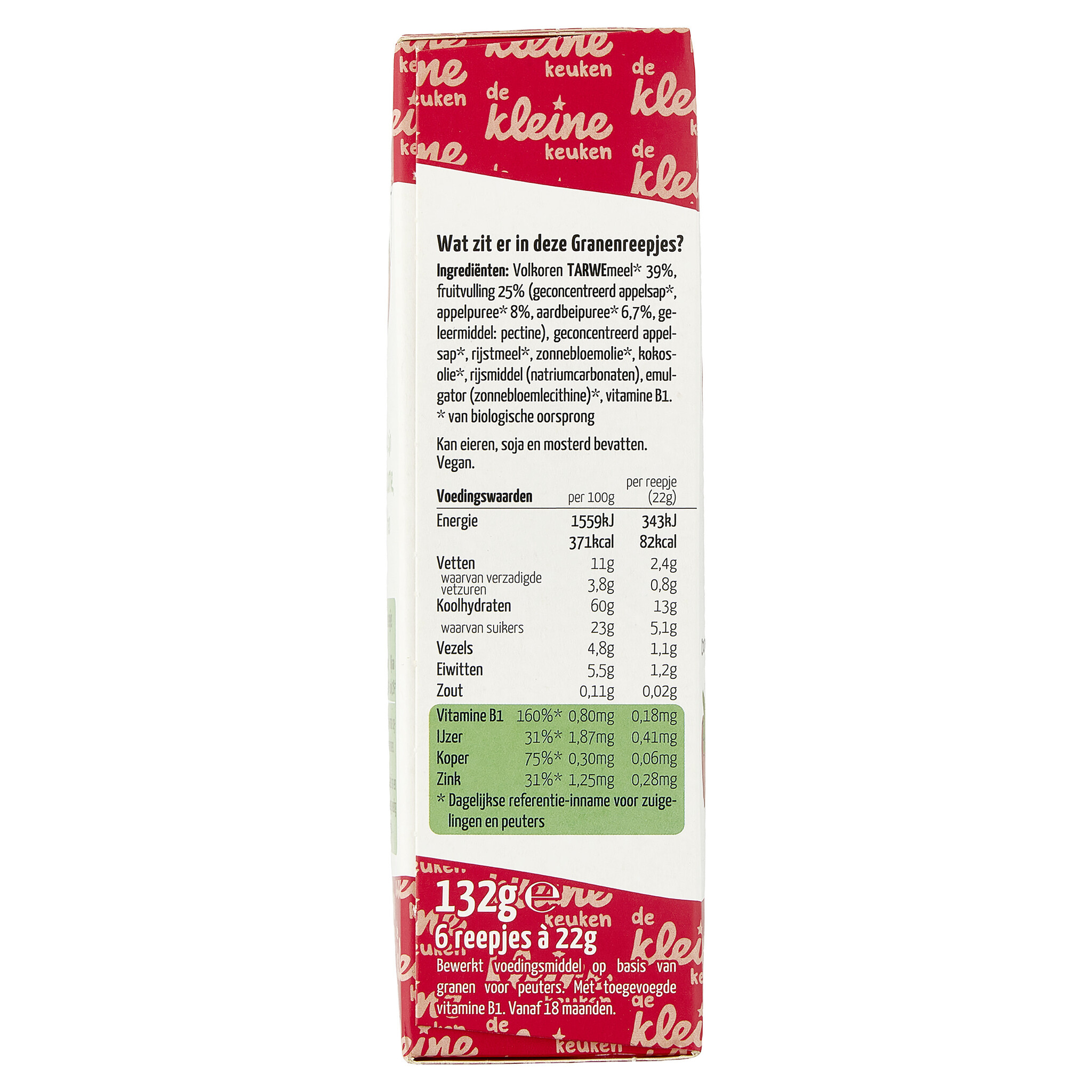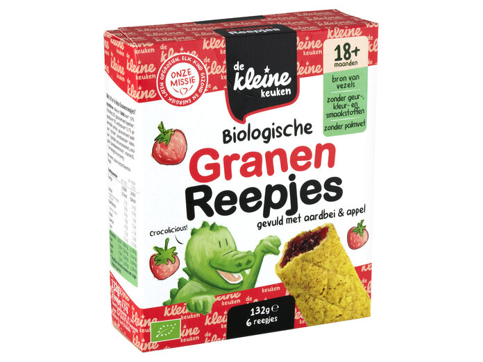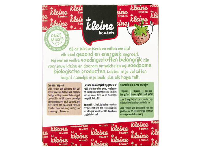 Whole grain WHEAT flour* 39%, fruit filling 25% (concentrated apple juice*, apple purée* 8%, strawberry purée* 6.7%, gelling agent: pectin), concentrated apple juice*, rice flour*, sunflower oil*, coconut oil*, raising agent (sodium carbonates), emulsifier (sunflower lecithin)*, vitamin B1.
