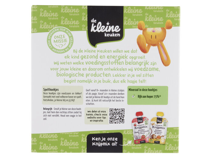 Wholegrain SPELT flour* 35%, concentrated apple juice*, OAT flour* 23%, sunflower oil*, coconut oil*, inulin (agave)*, emulsifier (sunflower lecithin), raising agent (sodium carbonates), vitamin B1.