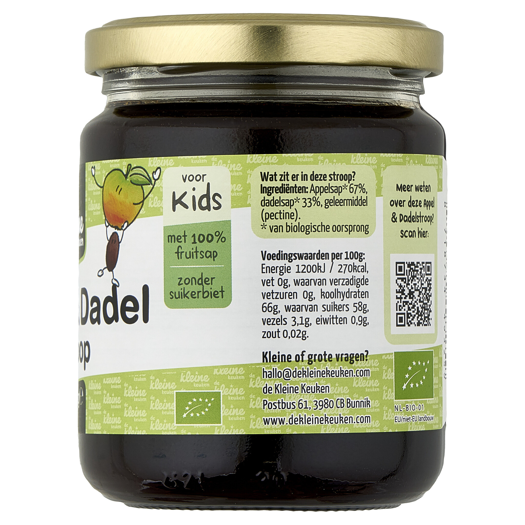 Appelsap* 67%, dadelsap* 33%, geleermiddel (pectine)*.