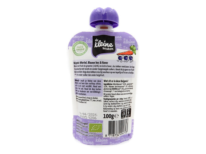 Biologische Knijpmix Wortel, Blauwe bes & Haver