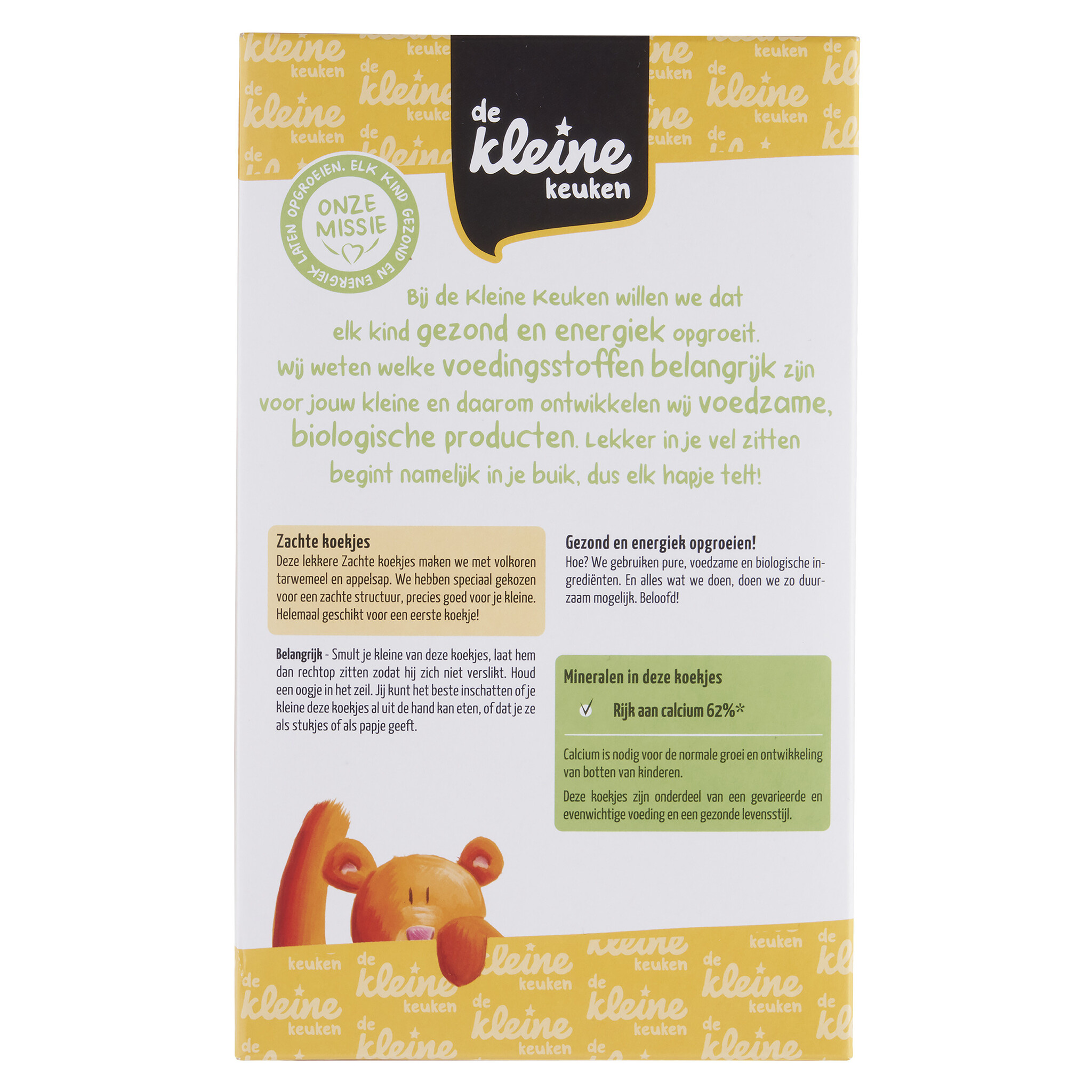 Volkoren TARWEmeel* 40%, geconcentreerd appelsap* 30%, rijstmeel*, zonnebloemolie*, cacaoboter*, inuline (agave), magere MELKpoeder, rijsmiddel (natriumwaterstofcarbonaat), calciumcarbonaat, vitamine B1.